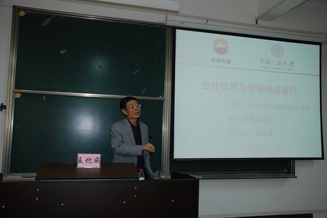 2013年11月29日下午3点半,“會萃堂”系列活动之名家讲坛在文添308教室成功举行。本次讲座的嘉宾是中国人民大学商学院王化成教授,其讲座主题是“会计信息与宏观经济运行”。 王化成,中国人民大学商学院教授、学科责任教授,博士生导师,博士后联系人。全国会计专业硕士学位教育指导委员会秘书长,国家社科基金评委,中国会计学会理事兼副秘书长,中国会计学会财务成本分会副会长,中国总会计师协会常务理事。我国多所知名大学兼职教授、英国卡迪夫大学中国会计、财务与管理研究中心客座研究员。多家公司独立董事,主持多项国家自科、社科课题,发表论文100余篇,出版专著教材20余部。多次获国家级、省部级优秀科研成果一等奖、二等奖,《会计研究》等杂志特邀编审。莅临本次讲座的嘉宾还有银河副院长兼会硕中心主任张敦力教授。