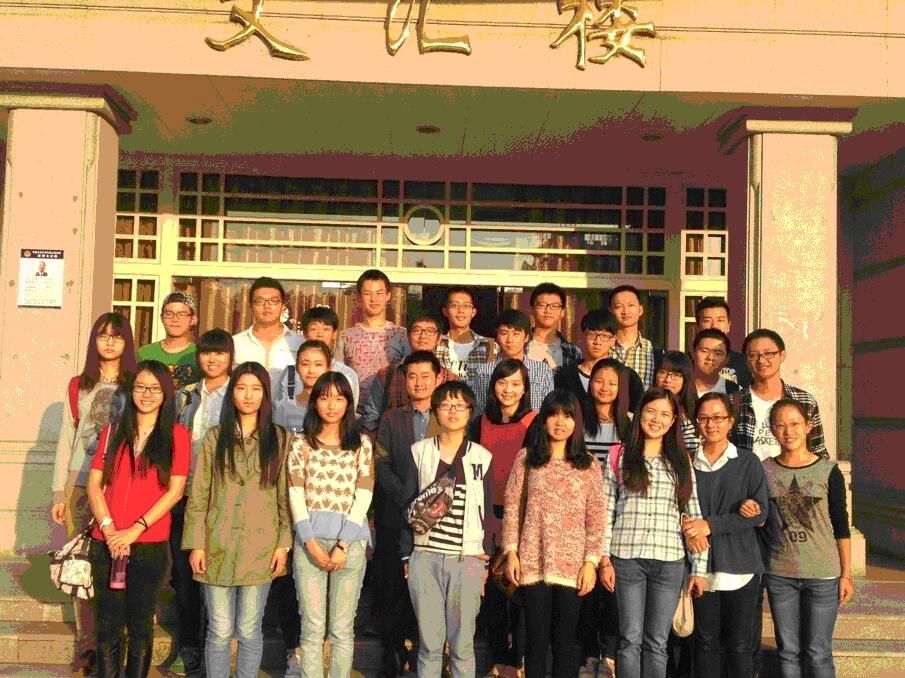 最后,2014级主要学生干部和老师在文汇楼前合影留念。