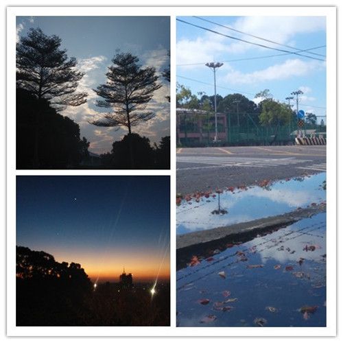另一个给我留下深刻印象的是校园的环境。我们所在的宝山校区是在一座山上,生态环境特别好,可爱的松鼠、机灵的蜥蜴、可怕的蛇、成群的野狗随处可见。天大多数时候是湛蓝湛蓝的,配上悠闲的生活节奏,初来乍到时便有一种恍若隔世的感觉。寻觅着来到了《那些年》里主角就读的彰化市精诚高中,雨过天晴后天空中偶然望见的三道彩虹,更给人以惊鸿一瞥之感。