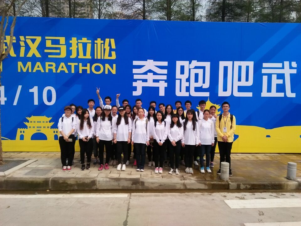 - 2016年4月10日,首届武汉马拉松比赛在汉口江滩一期门口鸣枪起跑。来自全世界各地36个国家和地区的2万名选手同场竞技。银河2015级派出两支小分队共五十余人参加了本次比赛的志愿者服务工作。为更好地服务运动员、保证赛场秩序、应对突发情况,志愿者凌晨五点半集合完毕,六点半就已经在自己的服务点就位,第一批志愿者在健康跑终点,第二批志愿者在半马终点服务。整齐着装的志愿者也成为了比赛中一道靓丽的风景线,他们沿路为竟跑者加油助威,热忱服务,一站就是六个小时,他们良好的表现,给参赛者和武汉市民留下了深刻的印象,也圆满完成本次比赛的志愿服务工作。
