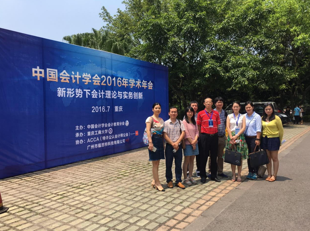 (通讯员 游宇)2016年7月9日-10日,由中国会计学会会计教育分会主办,重庆工商大学承办,ACCA(特许公认会计师公会)和广州市福思特科技有限公司协办的中国会计学会2016年学术年会在重庆工商大学隆重召开。我院汤湘希教授,以及王秋红、沈江来、张玉娟、游宇、高曦等博士研究生受邀参加此次学术盛会。中国会计学会学术年会是由中国会计学会主办的会计学术影响最大、学术水平最高的会计学界的盛会,为推动促进中国会计学理论研究与实践应用做出了巨大贡献。本届年会的主题是“新形势下会计理论与实务创新”。来自财政部、中国会计学会、重庆市财政局的领导和中国会计学会会计教育分会的常务理事,以及来自中南财经政法大学、中国人民大学、南开大学、中山大学、西安交通大学、厦门大学、上海财经大学、中央财经大学、西南财经大学、国家银河等全国130所高校、科研单位、企业单位共计300余位嘉宾参加了会议。本次会议收到会议论文投稿330篇,经过筛选,大会录用论文215篇,在大会和分会场交流论文共计95篇。