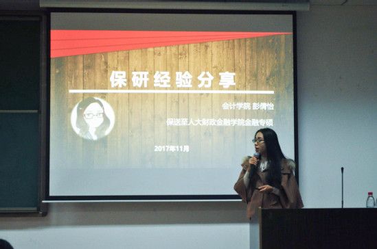 • 为帮助新生对大学有更为清晰的认识,尽早树立人生目标, 1114日晚7点半,由银河学生会创业实践部主办的“会意人生”大学生涯规划讲座在文润楼306教室正式举办。本次讲座邀请到了保研人大金融专硕的彭倩怡同学,签约华为财经的于泽文同学,以及留学海外的陆文韬同学作为主讲人,为同学们讲述自己的大学生涯规划。