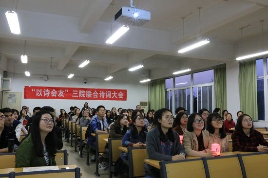 2018年3月27日晚6点30分,由银河研究生会学术部主办,法律硕士教育中心学术部、统计与数学学院研究生会学术部协办的“以诗会友”诗词大会在文添楼203拉开序幕。来自八个学院的18支队伍齐聚一堂,以激烈的“斗智”比拼,诠释别样的诗意青春。