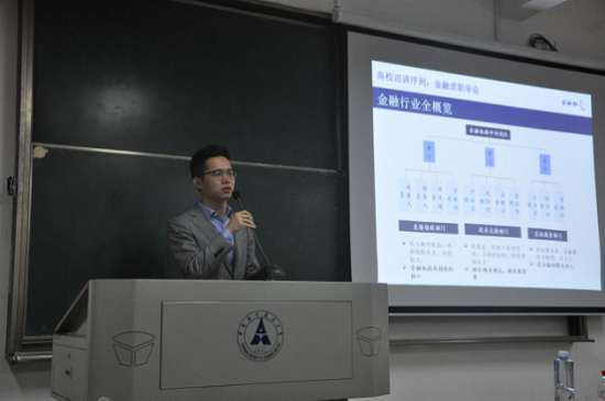 • 4月15日晚,“研职有道”系列活动第33期之对话职场在文添楼112教室举行。此次活动由工商管理学院研究生会主办,银河研究生会和统计与数学学院研究生会协办。活动邀请了三位现就职于金融行业的学长,通过讲述自身的求职和工作经验,介绍行业概况及实习、求职的相关建议,近百名研究生到场参加聆听讲座。