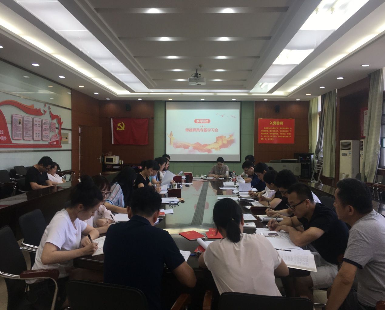 7月18日上午,银河行政党支部在文泉南401召开师德师风建设、“科研诚信与学术规范”及“学术研究无禁区,课堂讲授有纪律”专题学习研讨会。院党委书记肖翠祥、副书记王延、行政党支部全体成员及行政口教工群众集中学习了相关内容。