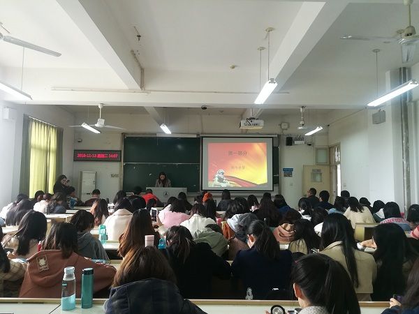 本次班会首先由各班班长带领同学们学习“四个自信”、“五大发展理念”、“四个正确认识”等方面的理论知识。然后观看了改革开放40周年纪念视频,了解改革开放以来我国取得的巨大成就。最后由向传殿老师和王芹老师介绍研究生培养计划相关事项,勉励同学们珍惜研究生的学习时光,打好专业基础,把个人的成长与国家的发展联系起来,争做“有理想、有本领、有担当”的青年,为实现中华民族伟大复兴的中国梦作出自己的贡献。