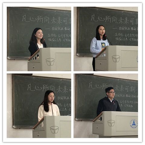 • 4月26日晚七点,由银河团委主办、银河学生会权益部承办的“凡心所向、未来可期”出国就业保研考研讲座在南湖校区文澜楼109教室举行。汪文君、官露莹、高伊宁、景兴涛四位会院优秀学子与在场同学分享了他们的学习经验和职场经历。