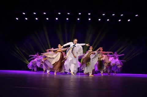 我院的参赛舞蹈《阿里路》通过对一位朝鲜族母亲的刻画,映衬出一个民族不畏艰难、跋涉向前的品质。舞台上,奚琴长鼓悠然响起,身着朝鲜族舞服的舞者翩然起舞,既表现出朝鲜舞的内敛与隐逸,又融入了现代舞的豪放与力量。舞者一颦一笑,一悲一喜,演绎着一位母亲的坚强与大义,也为观众展现了阿里路上的母子情深与家国情怀。