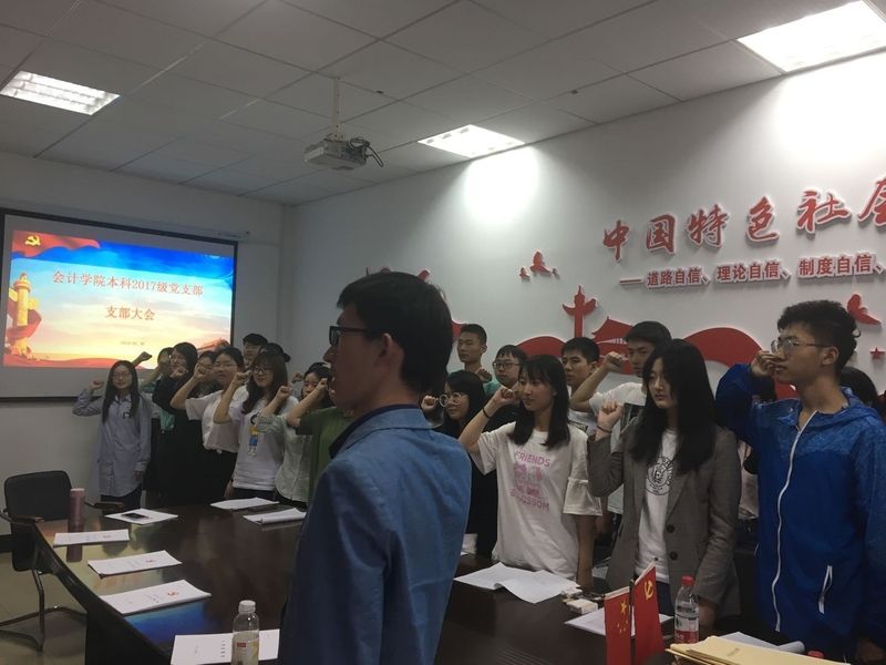 最后,29名预备党员面对党旗进行了庄严宣誓。铿锵有力的誓词表达了29同志在入党之际的激动和喜悦,也传递着新时代学生党员不忘初心、牢记时代使命、争做合格党员的坚定信念。(通讯员 周文渊 摄影 邱言 刘海宁 审核 陈俊华)