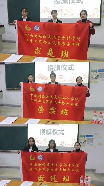 大会主要包括七项内容。第一项,奏唱共青团团歌。接下来银河团委书记张昭妍老师、副书记陈俊华老师分别为第十三期青马班“求是班”、“崇实班”、“致远班”、“励学班”、“进取班”授旗。