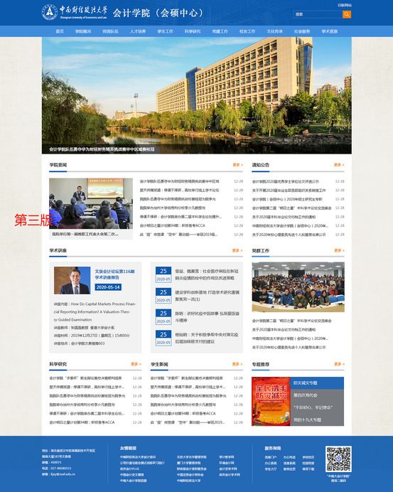 自2019年底,我院开始着手学院网站改版工作,在党委书记殷修林教授的提议下,经党政联席会审议,启动了此项工作。在改版建设期间,我院多次研究兄弟高校、兄弟院系网站特点,并结合本院实际情况,在征求职能部门、学院领导及学院党团、教学、科研、学生管理、图书馆等口同志们意见,经多次设计、开发修改,终于将全新的网站呈现在公众面前。