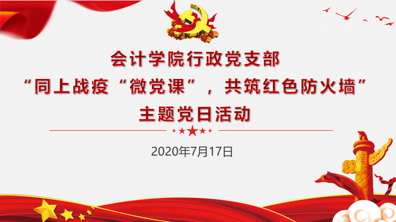 最后,行政党支部成员准时收看了全国高校党组织战疫“示范”微党课展播第五期的内容,重点学习了我校李可同志在疫情突发时只身“逆行”返汉,支援火神山、雷神山网络建设的先进事迹。李可以《见证·担当——我在火神山、雷神山的战“疫”故事》为题,向我们讲述了一名优秀共产党员的责任与担当。