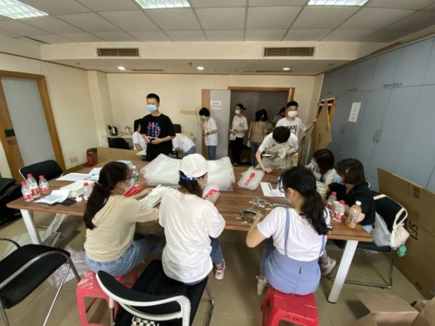 8月22日至23日,年级学生分期分批、错时错峰返校,在完成了扫码、测温、面部识别等流程后入校。因打包物料种类多、数量大,为减少中间转运环节,年级办在中南210办公室设置了学生报到和物料领取点,班委团队则提前录制了流程小视频,指导同学们快速完成整个流程,学生有序排队,保持1米间隔,逐个进入依次完成签到充磁、信息更新和物料领取,有效减少人员聚集、逗留的时间。23日,陈楠和黄艳前往学生宿舍查看打包进度和质量,逐一指导学生扎口打包,并反复强调了人身财产安全问题和宿舍清洁等问题。