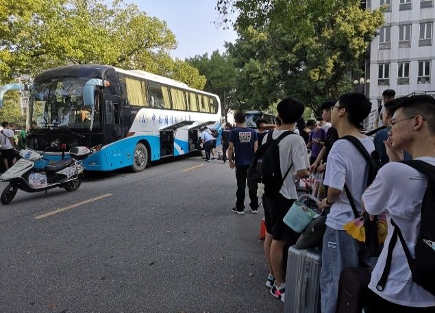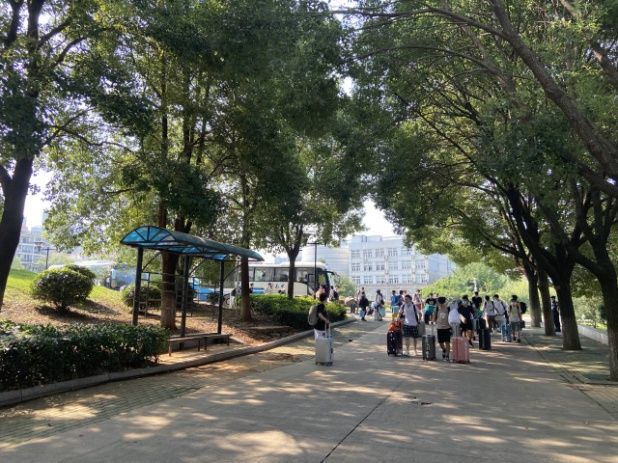 年级355名女生根据以班级为单位相对集中的原则分散乘坐11辆大巴,于25日下午15:00出发前往南湖校区。作为首义校区最后一批离开的学生,学院党委副书记王延、学办主任孟曰和陈楠、黄艳两位辅导员都前往送行,并逐辆车核查人员是否到齐,协助行李妥善放置。