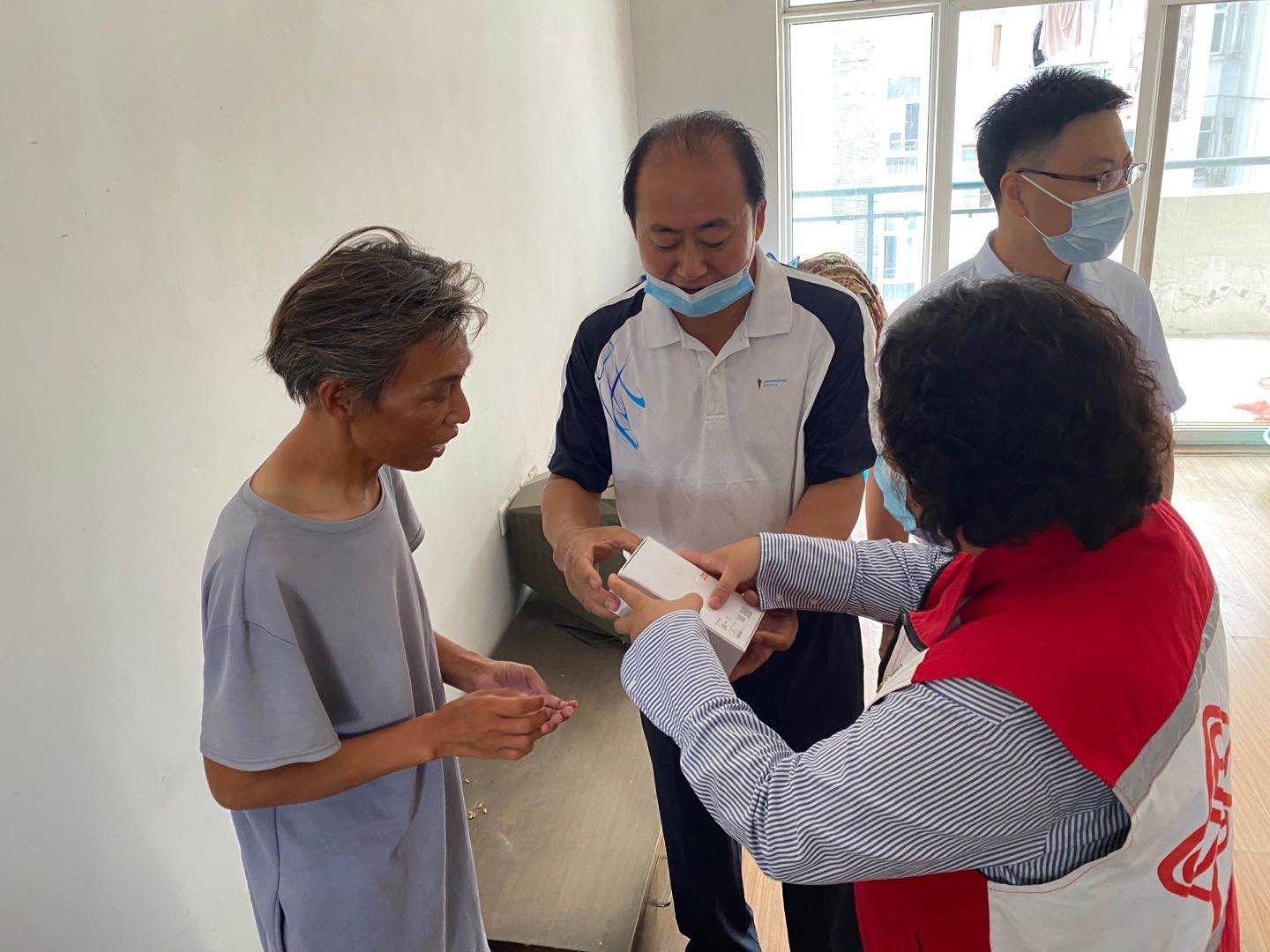 在社区工作人员的带领下,罗明辉、殷修林等一行来到黄红英老师的家中,与她亲切交谈,详细询问生活、身体健康状况和子女入学情况,提出了帮助其协调子女入学的方案,并得到黄红英和家人的认可。下一步,学院将继续会同校工会等部门,与东湖高新区教育主管部门、相关中学沟通协商,争取尽快解决黄老师的实际困难。殷修林为黄老师送上一台华为手机,勉励她以积极的生活态度面对暂时的困难。