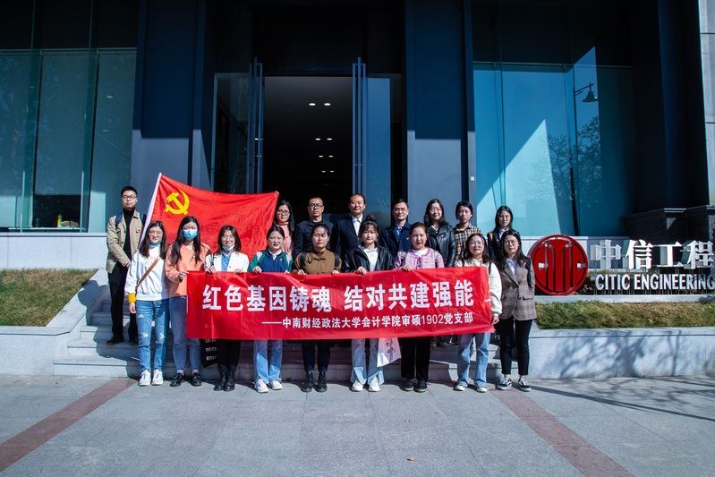 11月11日,银河审硕1902党支部在院党委书记、副院长殷修林教授,党委委员、副院长王华教授的带领下前往中信工程设计建设有限公司,与其机关党支部改革创新党小组以“学习贯彻十九届五中全会精神,聚焦夺取目标任务、发展质量双胜利”为主题开展支部共建活动,聚焦战疫一线的先进事迹,开展专业领域的实务交流,构建“资源共享、优势互补、双向服务、合作共赢”的校企合作党建工作模式。