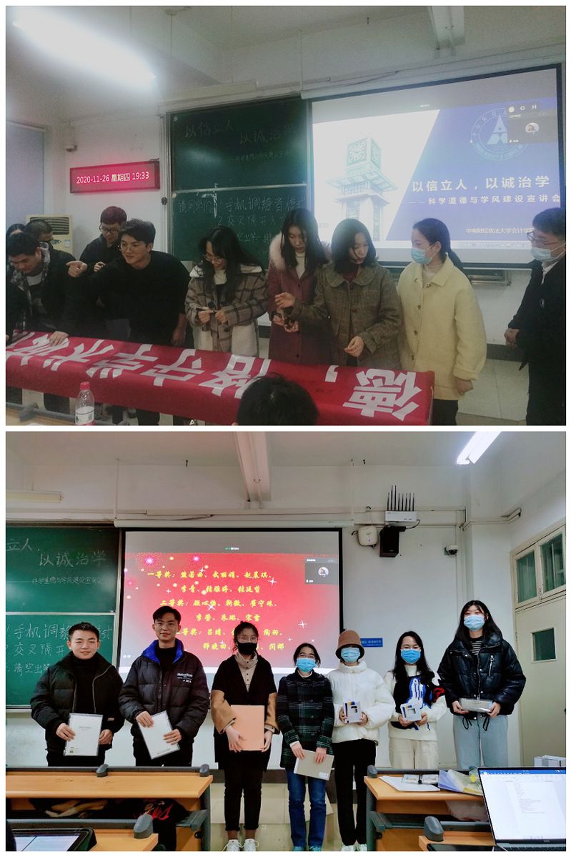 2020年11月26日晚7点30分,由中南财经政法大学校研究生院、党委研究生工作部和校研究生会主办,银河承办的“科学道德与学风建设宣讲教育”活动在文添楼209教室成功举办。本次活动以“以信立人,以诚治学”为主题,学院近300名硕、博研究生以线下或线上形式参与了本次活动。