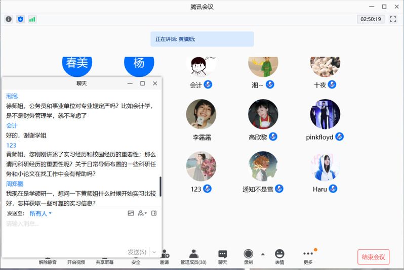 经验分享结束之后,同学们纷纷通过线上聊天框的形式,与三位主讲嘉宾进一步的沟通和交流。(文/图 宋辛欣)