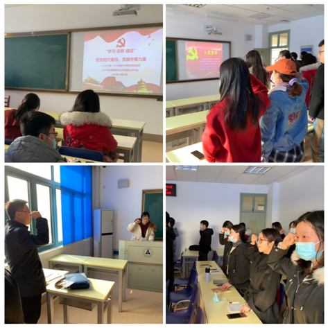 主题党日活动一开始,由党支部副书记朱憬怡同志重温入党誓词并组织12月份党费交纳,接下来由杨名同志带领大家重温入党誓词。