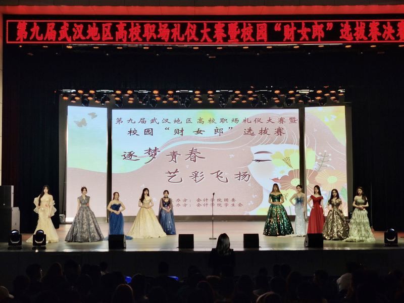 4月15日晚7时,由中南财经政法大学银河团委主办的第九届武汉地区高校职场礼仪大赛暨“财女郎”选拔赛决赛于该校南湖校区艺体中心拉开帷幕。来自该校和武汉其它高校的十位佳丽同台争妍斗艳,以自信的姿态与精彩的表演绘制出一幅当代女大学生积极健康、追求卓越的美丽画卷。