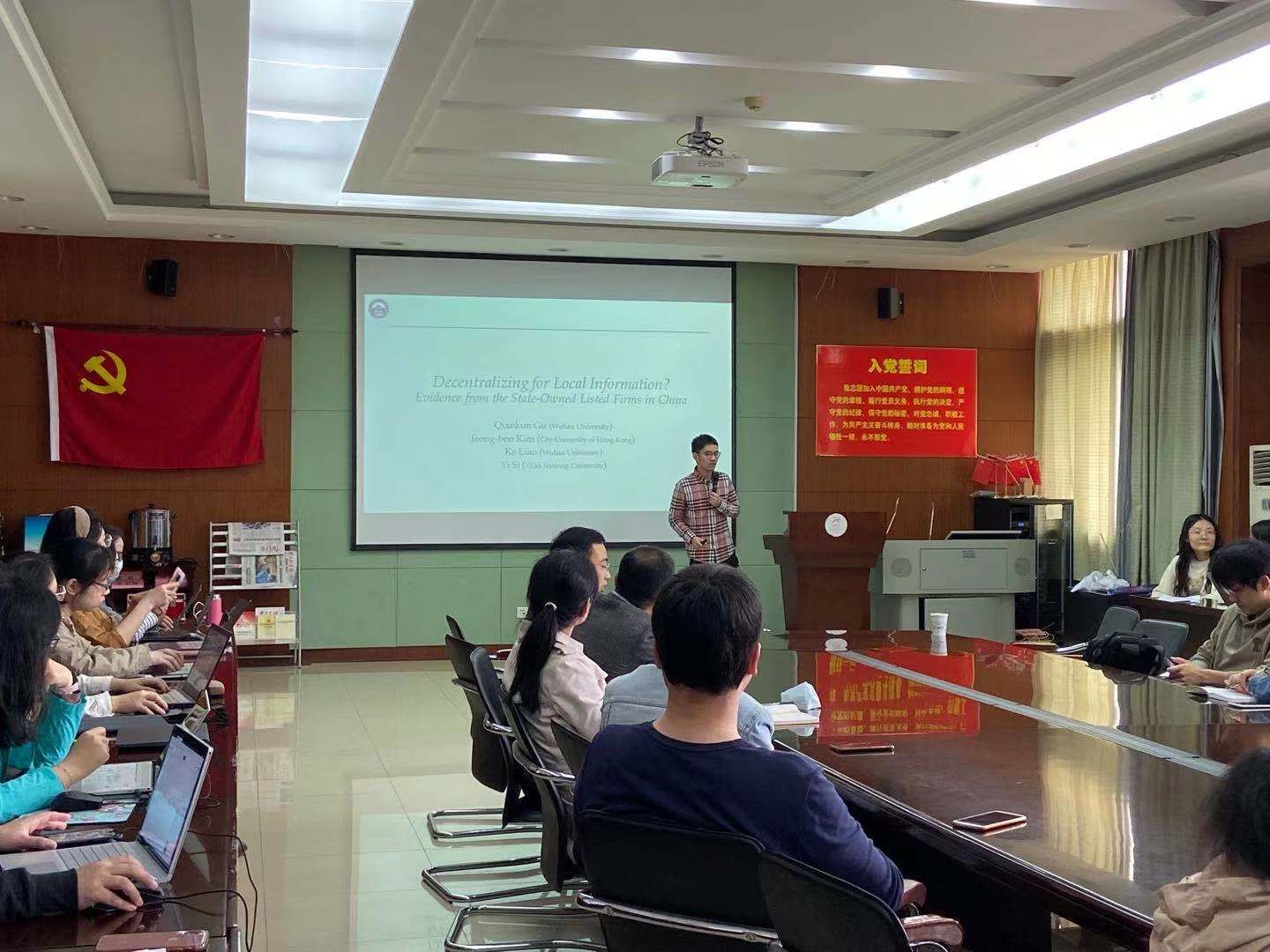 2021年4月15日,“中南·会计Seminar”第93期在文泉楼南401成功举行。武汉大学廖珂助理教授应邀为我院师生作了题为《Decentralizing for Local Information?Evidence from the State-Owned Listed Firms in China》的学术报告。