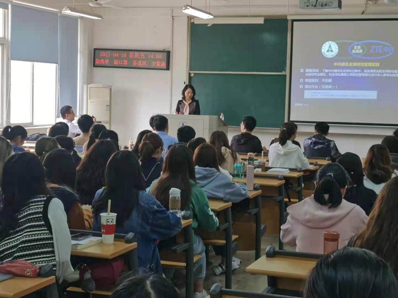 4月16日下午2:00,中兴通讯副总裁、中国注册会计师王秀红女士在文添楼303教室为学院(中心)2020级审计硕士讲授《中兴通讯全球财经管理实践》课程,该课程由学院(中心)专业硕士导师组组长季华副教授主持,2020级审计硕士聆听了相关内容。