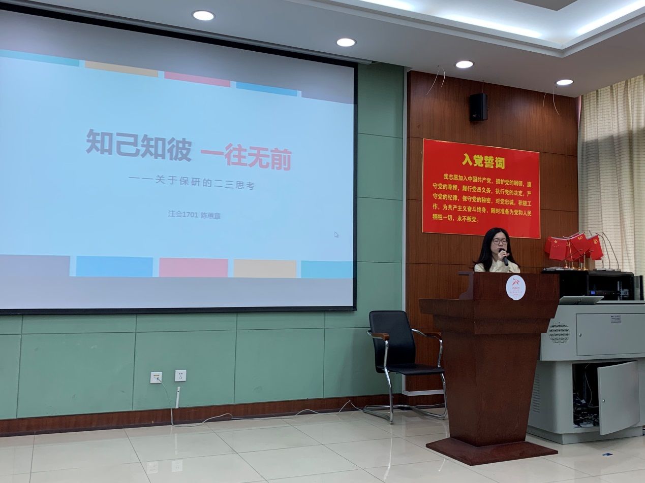 为贯彻“学党史、悟思想、办实事、开新局”的精神,银河本科2018级学生党支部联合2018级团总支、年级学生会主动回应年级学生关切,了解年级学生需求,举行保研、考研和就业经验分享会。邀请到了保送清华大学的陈蕙章,考研上岸成功的王弈林、徐雪婷和成功被普华永道录用的金思雨以及被华为财经录用的冯享栋。为大家带来了充实精彩的经验分享,发扬“传帮带”的精神,解决了处于就业分流关键期同学的疑惑,引导了年级就业工作的氛围,开启了年级就业工作的新局面。