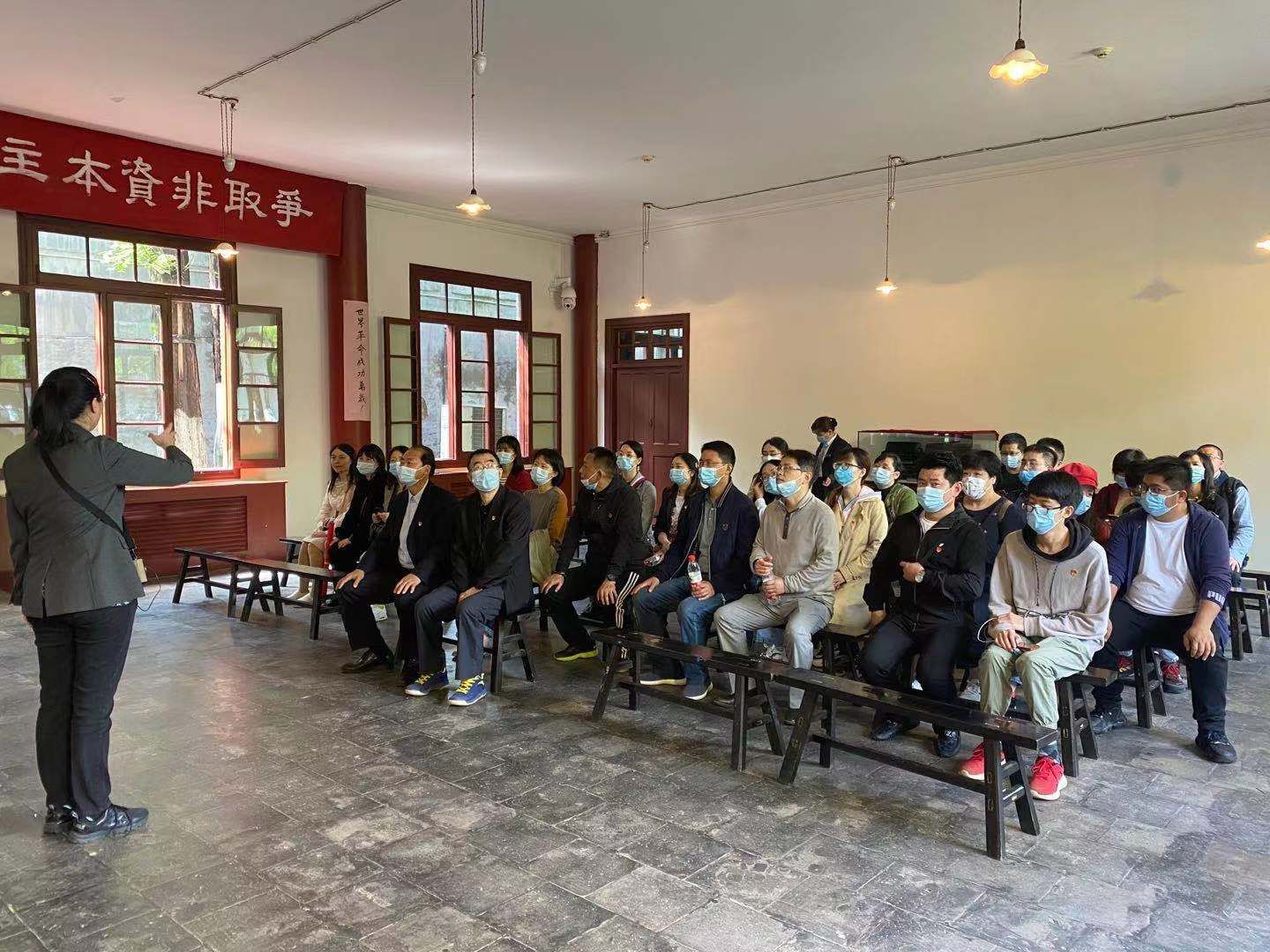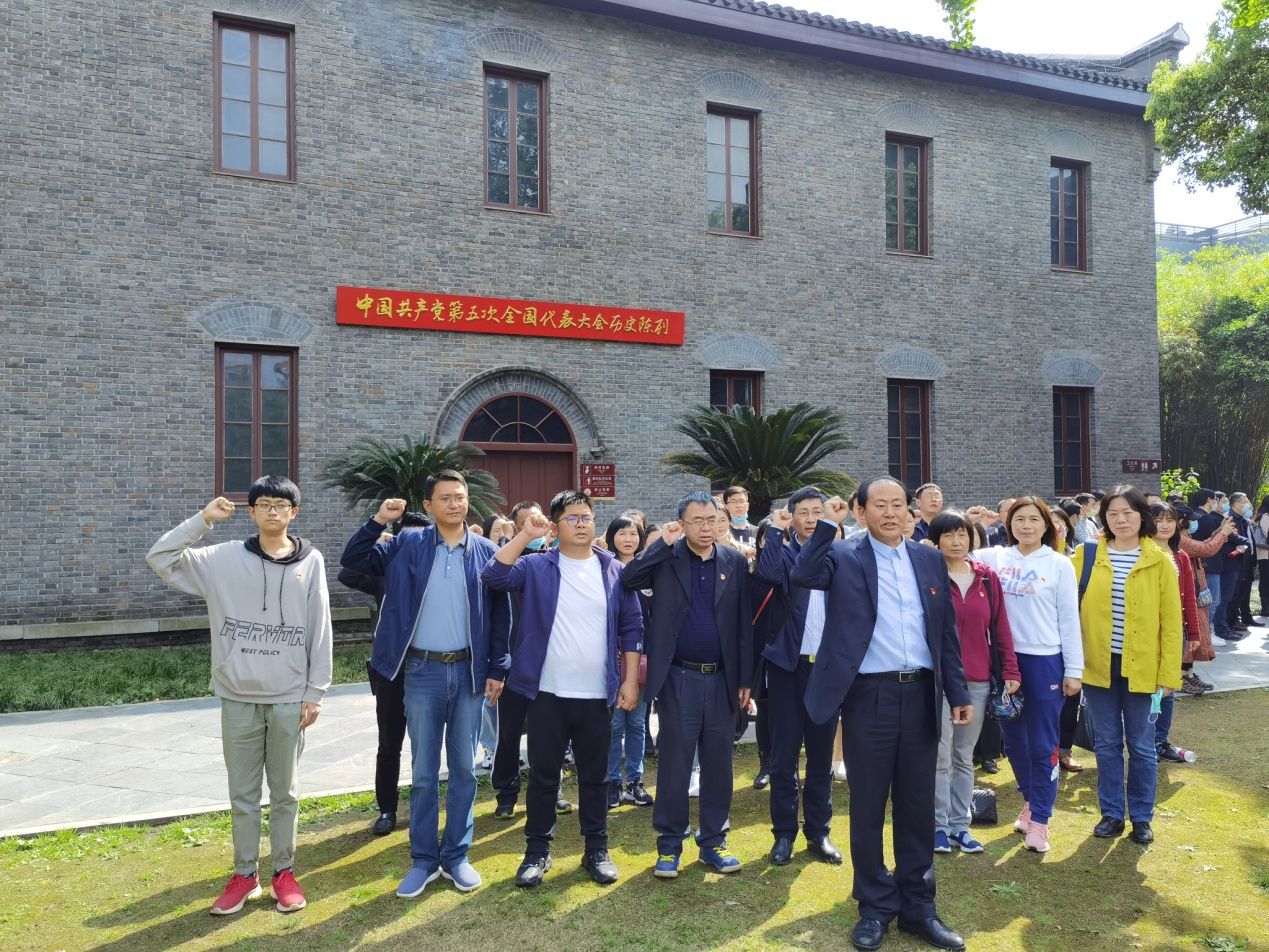随后参观了中国共产党第五次全国代表大会会址纪念馆,学院师生参观了临街门楼、教学楼、小礼堂、风雨操场和教工宿舍,学习了中共五大召开的历史背景,会议经过和影响。在中共五大会址纪念馆前,全体党员重温入党誓词,面对党旗,举起右拳,庄严宣誓。