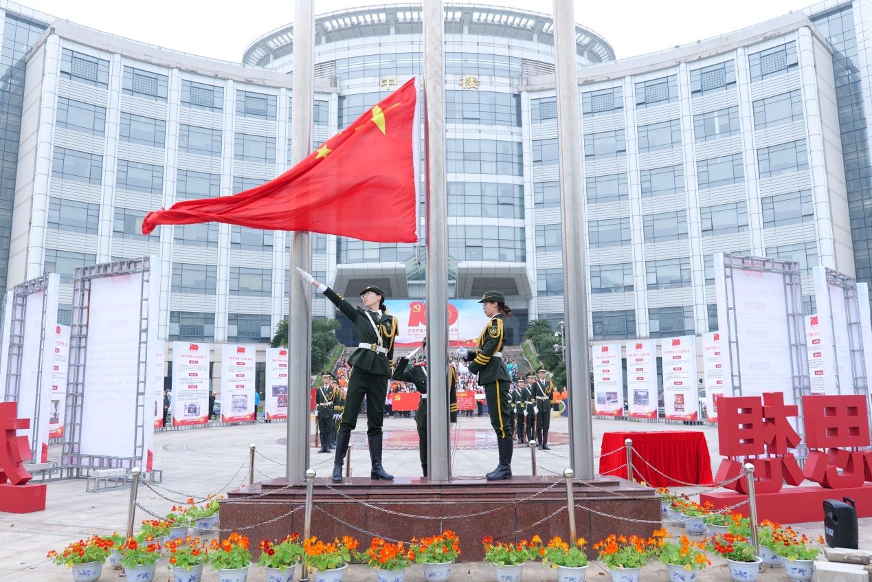 20块百年党史文化知识展板在中原楼广场巍然耸立,壮观雄伟,波澜壮阔。上午七时三分,国旗护卫队迈着坚毅的步伐,伴着铿锵的口号,越过青云桥,将鲜艳的五星红旗护送到中原楼广场,伴随着国歌声冉冉升起。校党委常委、副校长姚莉教授宣布银河“学党史·悟思想·办实事·开新局”主题升旗活动暨党史文化知识展开幕。活动第一项,yh86银河国际党委书记殷修林带领同志们重温入党誓词,“为共产主义奋斗终身”的誓言牢记心中,响彻耳畔,庄严神圣。