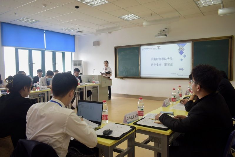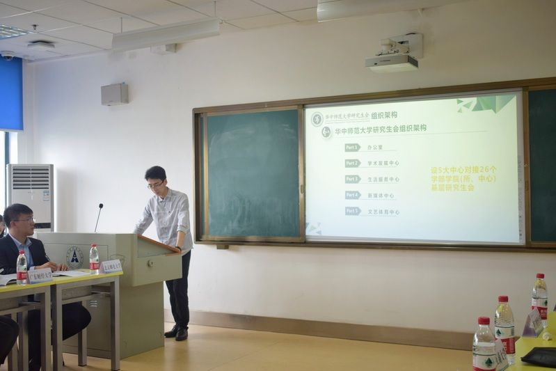 接着,华东政法大学研究生会代表潘敦峡执行主席介绍了华东政法大学研究生会的特色工作。他指出,华东政法大学研究生会始终坚持思想引领,坚持理论学习,组织各学院主席团参与学习习近平新时代中国特色社会主义思想,不断学习马克思书刊,弘扬爱国精神,并深化研究生会改革,不断精简机构;华中师范大学研究生会代表皱照斌从组织架构、特色活动等方面对华中政法大学研究生会的工作进行了简要的介绍。