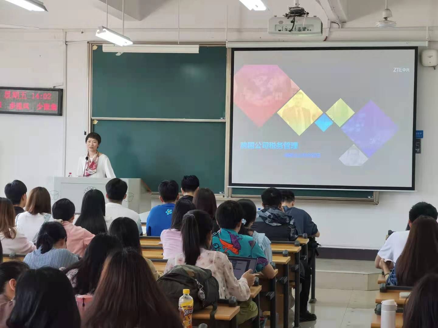 (通讯员:苗佳宁)2021年4月30日下午14时,中兴通讯集团财务部副部长、全球税务总监张晓颖女士在文添楼303教室为学院(中心)2021级审计专硕研究生讲授《跨国公司税务管理》,该课程由专硕导师组组长季华副教授主持,2020级审计专硕等研究生聆听了相关内容。