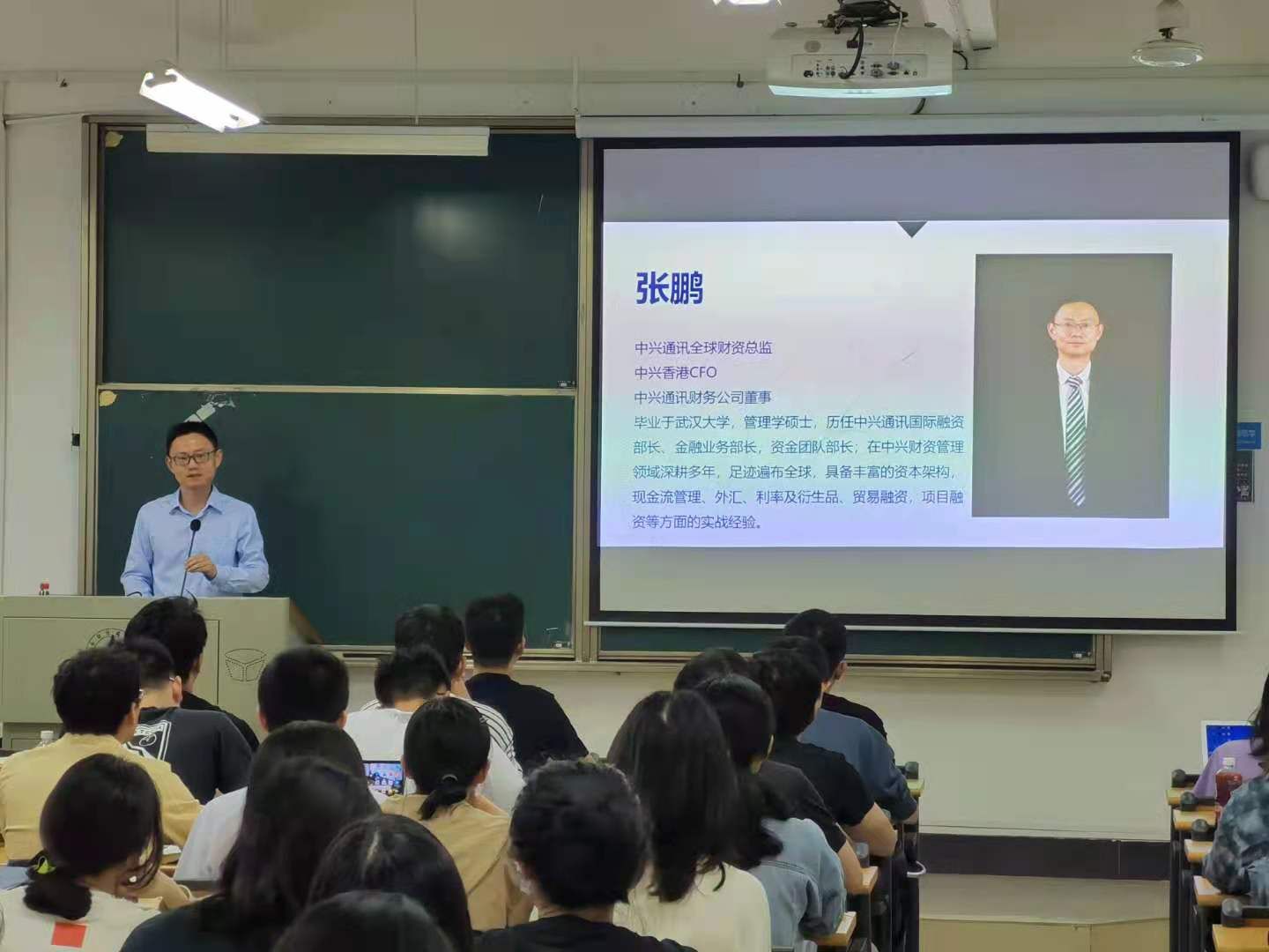 (通讯员:苗佳宁)2021年5月21日下午14时,《财会审前沿问题研究》课程在文添楼303教室如期举行。本次课程的主讲人是中兴通讯全球财资总监张鹏。张鹏总监毕业于武汉大学,历任中兴通讯国际融资部长、金融业务部长、资金团队部长,张鹏总监在中兴财资管理领域深耕多年,足迹遍布全球,在资本架构、现金流管理、外汇、利率及衍生品、贸易融资、项目融资等方面具备丰富的经验。该课程由专硕导师组组长季华副教授主持,2020级审计专硕等研究生聆听了相关内容。