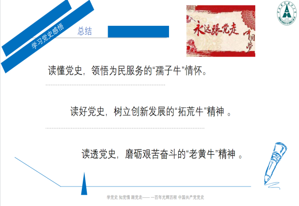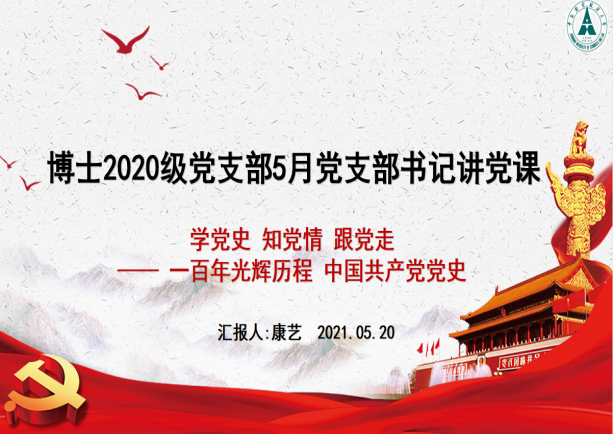 博士2020级党支部开展了以“学党史 知党情 跟党走—一百年光辉历程 中国共产党党史”为主题的党支部书记讲党课,通过介绍党史发展脉络及学习意义,进一步介绍了新民主主义革命时期、社会主义革命和建设时期、改革开放和社会主义现代化建设时期,最后和各位支部党员一起交流了学习党史的心得体会,总结为三点:读懂党史,领悟为民服务的“孺子牛”情怀;读好党史,树立创新发展的“拓荒牛”精神;读透党史,磨砺艰苦奋斗的“老黄牛”精神 。通过此次党课,有利于进一步提升支部全体党员党性。