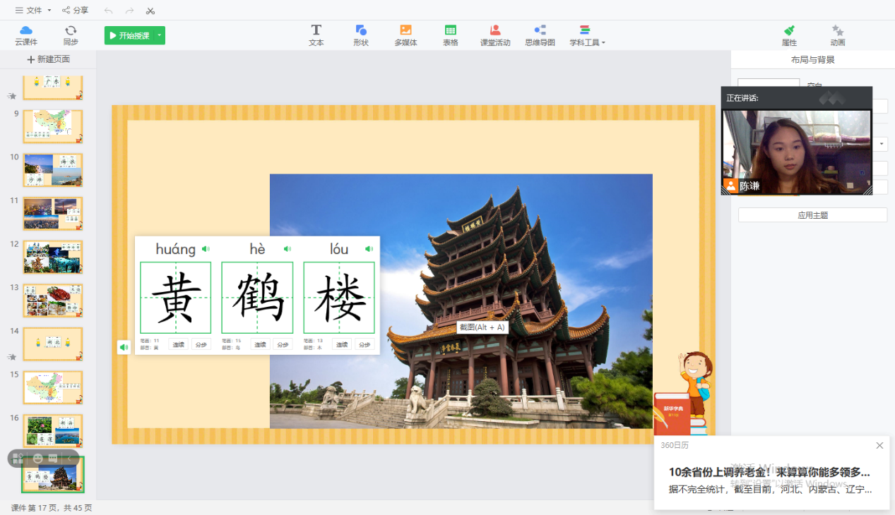 陈谦和乐辉同志以中国地图为载体,通过介绍各地区的风土人情及自然风光,带领同学们了解我国幅员辽阔、资源丰富的特征,形成祖国的初步认识,扩充地理知识。首先,陈谦同志介绍了此次活动的开展背景和主题形式,顺利引导同学们进入课堂,开启了有趣的线上之旅。
