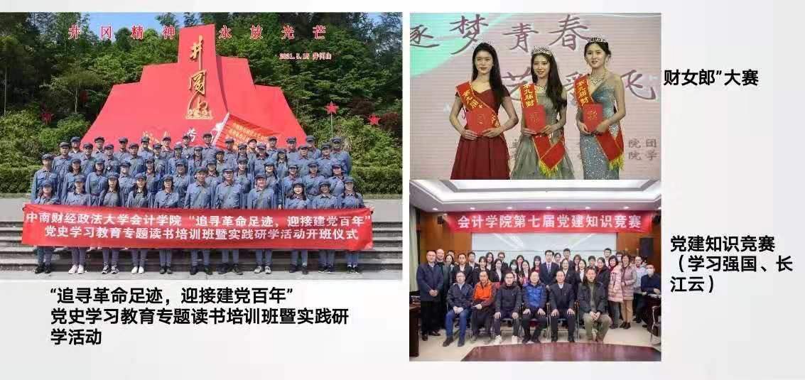 银河积极深化优质资源配置,以“三个特色”构建全程育人体系。努力把党建优势、学科优势、科研优势转化为育人资源与优势,为党支部订立目标,举办党建知识竞赛,以特色创新助推支部建设上层次,建立yh86银河国际党员之家微信公众号、今日头条号;在学科建设上,中南财经政法大学获得“第16届世界会计史学家大会”承办权;银河举办第三届亚太会计学科院长论坛;会计专业硕士获得全国MPACC教指委AAPEQ认证A级;学院获得“ACCA中国卓越教育机构”荣誉称号、ACCA白金级认可培训机构资格。