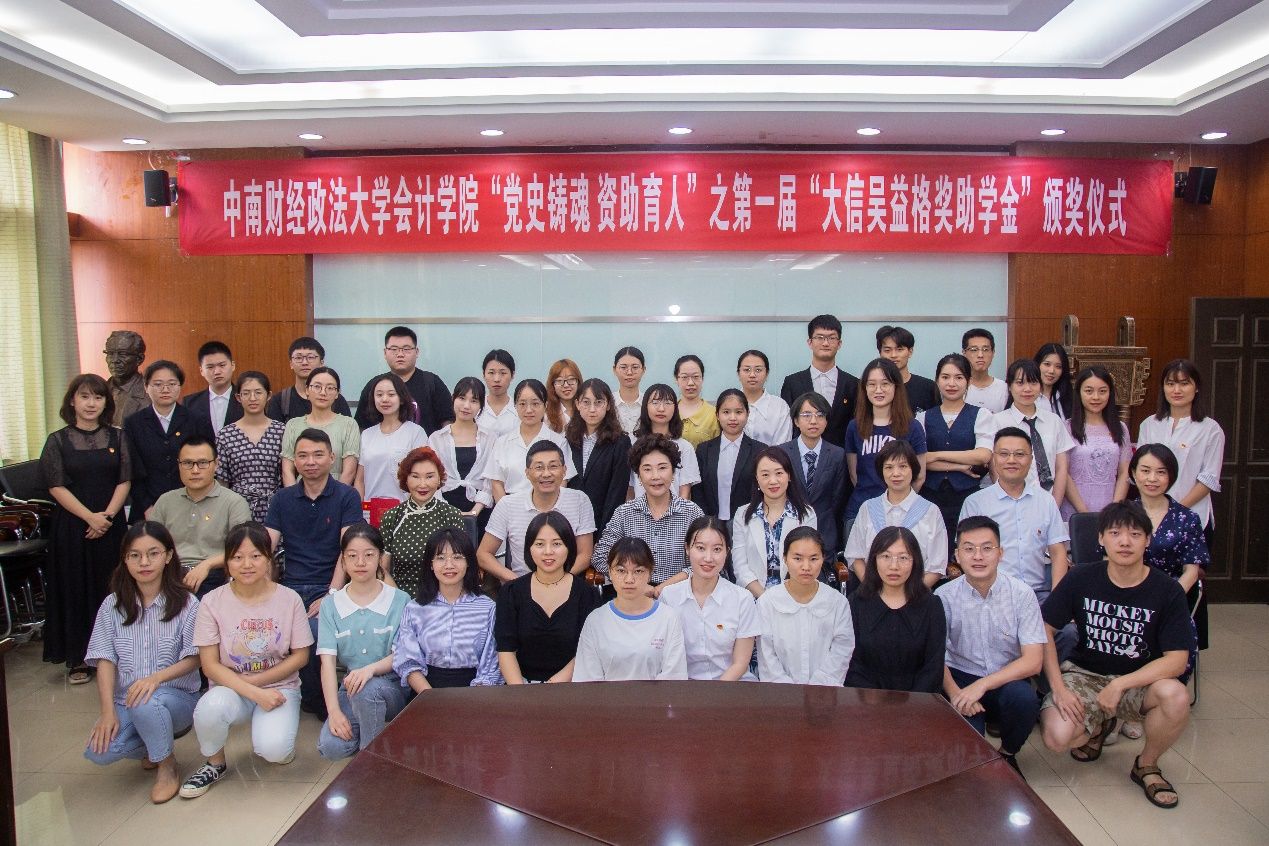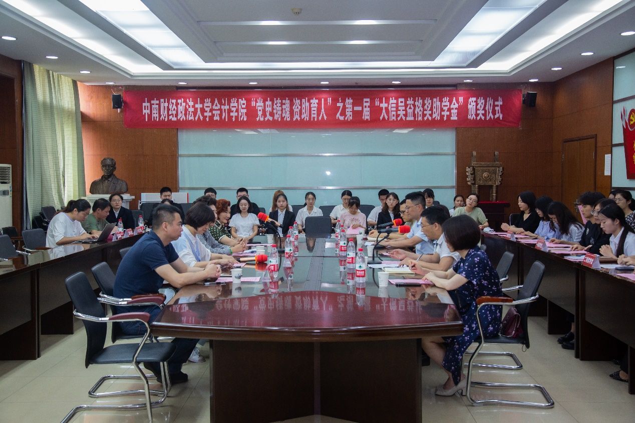 2021年6月25日,yh86银河国际“党史铸魂 资助育人”之第一届“大信吴益格奖助学金”颁奖仪式在文泉南401会议室顺利举行。大信会计师事务所管委会主席、执行事务合伙人、基金会荣誉理事长吴卫星,大信会计师事务所高级合伙人、大信吴益格公益慈善基金会荣誉理事马娟,大信会计师事务所合伙人徐敏,大信吴益格公益慈善基金会办公室主任郑文莅临会议,我校校友工作与社会合作部副部长、教育发展基金会副秘书长万莉,银河副院长王昌锐,yh86银河国际党委副书记兼行政副院长、纪委书记徐会超,校友工作与社会合作部基金工作办公室主任刘诲,yh86银河国际党政办公室主任胡桂锬等教职工,楚天都市报、长江日报等媒体,以及全体获奖学生参加了会议。会议由徐会超主持。