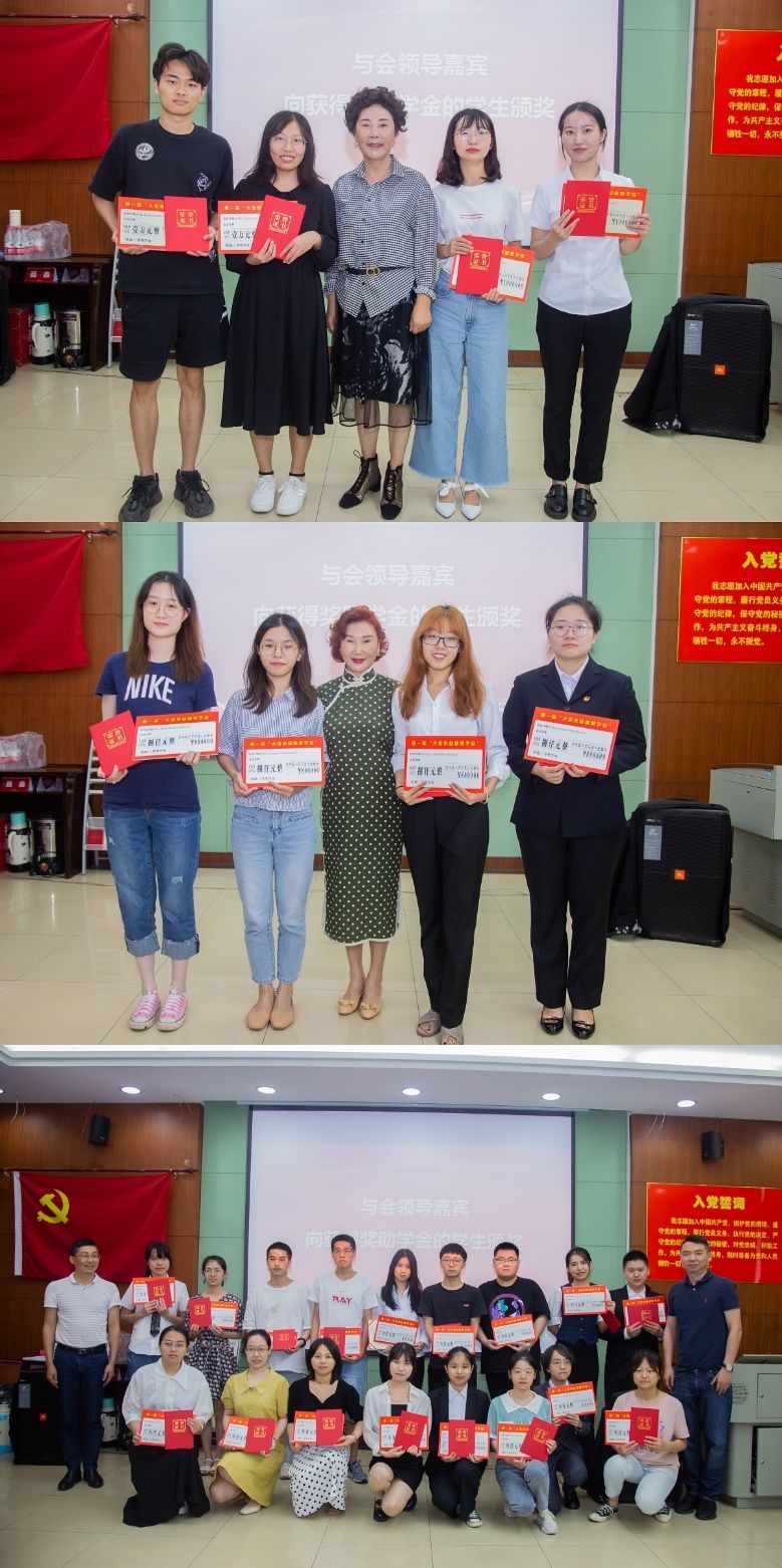 与会领导嘉宾一一向获得奖助学金的同学颁奖,“大信吴益格奖学金”获奖同学共32名,其中一等奖4名,每位同学获得10000元奖励;二等奖5名,每位同学获得8000元奖励;三等奖23名,每位同学获得3000元奖励。“大信吴益格助学金”获奖同学共14名,其中一等奖1名,资助10000元;二等奖5名,每位同学资助5000元;三等奖8名,每位同学资助2000元。本次“大信吴益格奖助学金”共颁发给46名同学、总金额20万元。