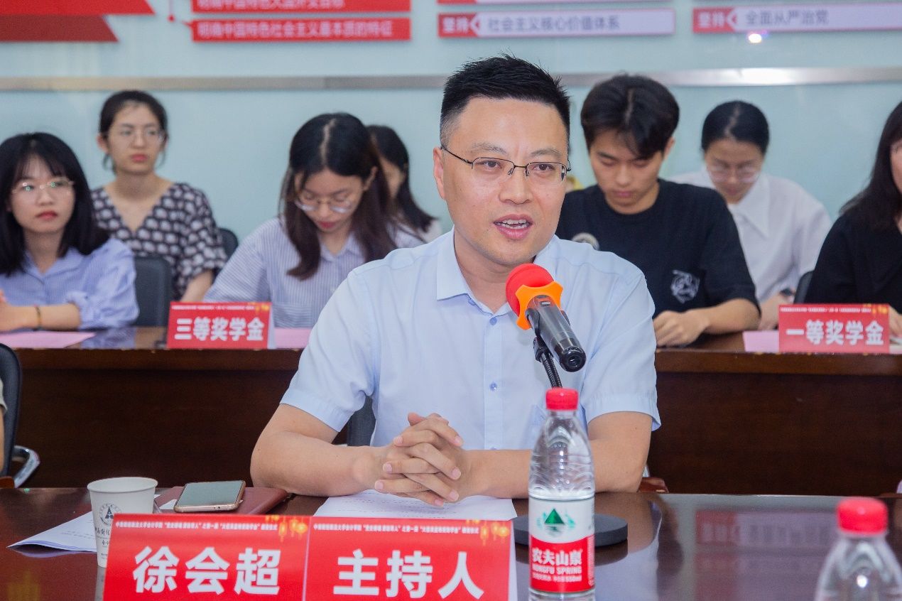 徐会超副院长在仪式伊始指出,2021年是中国共产党建党100周年,本次奖助学金的评选与颁奖列入了银河践行“学党史 办实事 见行动”的主题活动,在七一前夕、毕业生即将离校的时间节点举行此次颁奖仪式,意义不同寻常,既是向中国共产党建党一百周年献礼,也是为了激励广大同学立大志、明大德、成大才、担大任!