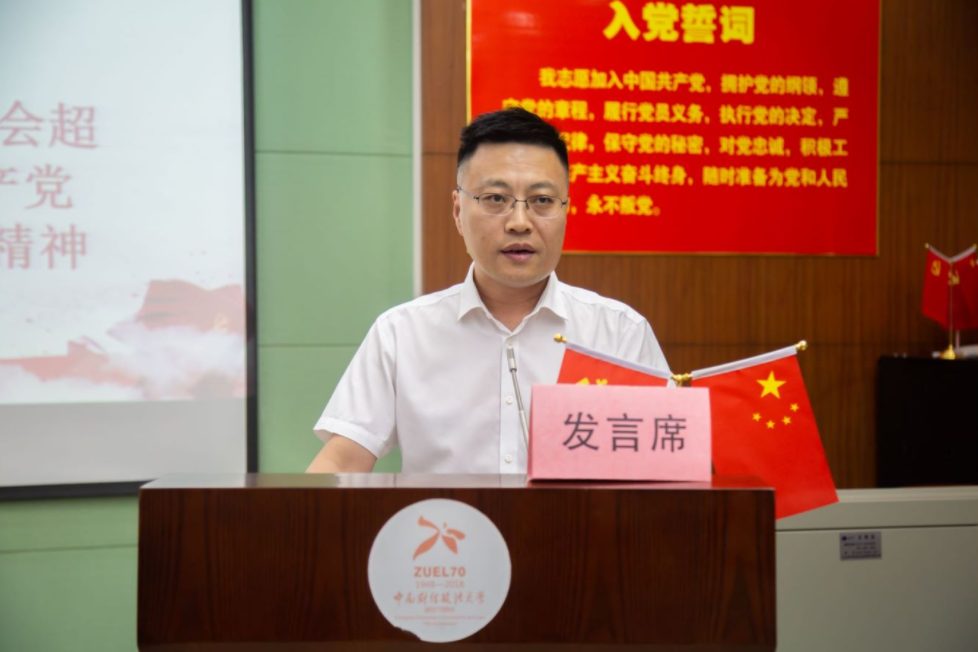 “优秀共产党员”教职工代表王嘉鑫从回顾过去、立足当下和展望未来三个方面展开汇报。自中南大本科阶段申请加入中国共产党,到来学院工作的三年时间的教学、科研、社会服务等各项工作,王嘉鑫认为自己的毕生追求是做一名有情怀、有思想,全心全意为党和学院的教育事业奉献的“教书匠”。最后,他祝福中国共产党红红火火,祖国繁荣富强,会院再创辉煌。
