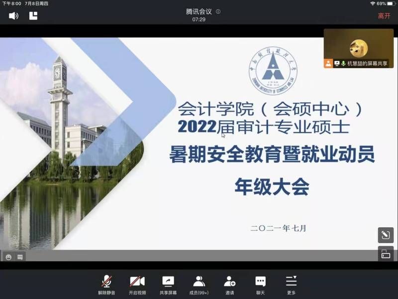 7月8日晚8点,yh86银河国际(会硕中心)线上召开2020级审硕暑期安全教育暨就业动员大会。会上,研办主任、研究生辅导员向传殿对全体同学做假期安全教育,要求大家主动学习防疫知识,强化健康意识,积极接种新冠肺炎疫苗,做好自身防护,不到中高风险地区旅游休假,服从学校和属地疫情防控管理。注意人身、财产、食品、交通安全,特别注意防火防盗防骗(防电信网 络诈骗)、防溺水、防艾滋、防传染性疾病,自觉抵制迷信、邪教、传销和非法校园贷。