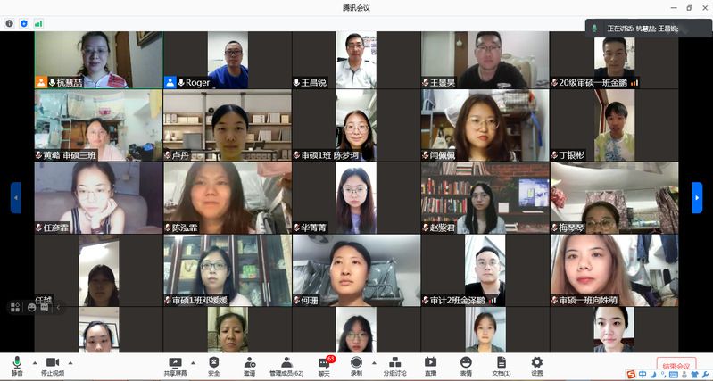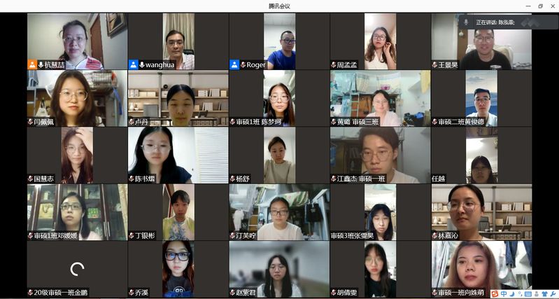 王昌锐副院长高度肯定了2020级审硕党史学习教育的成果,希望各位同学擦亮“中共党员”的名片,通过多种方式持续加强学习,并将习近平总书记的讲话精神转化为学习生活中的实际行动,以时不我待的紧迫感,在暑假期间做好学位论文选题、开题报告撰写、实习实践、注会备考等工作,充分发挥先锋模范作用。