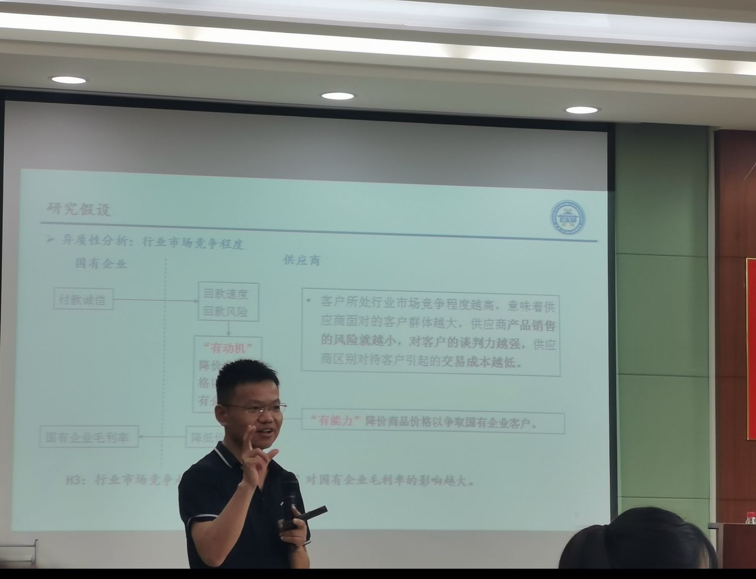 在交流提问环节,潘老师与我院张琦老师、杨国超老师、何婕老师就“信任”与“诚信”的区别,“清欠工作”政策干预是否具有负面效应,国企毛利率上升是否由民营供应商提供更高价格折让所致,是否需要进一步分析对民营供应商毛利的影响等问题进行了深入的讨论与交流。最后,黄勇老师对本次报告做了总结。至此,“中南·会计Seminar”第101期圆满落幕。(通讯员:余宣颖)