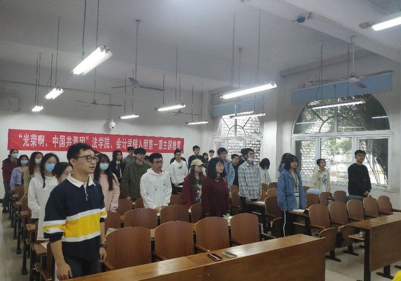 为进一步加强学校共青团队伍建设,为团组织注入新鲜力量,同时在发展过程中突出政治标准,严格发展程序,进一步提高发展团员质量,银河、法学院于10月10日在文澜楼105教室开展“光荣啊,中国共青团”入团第一课主题教育。