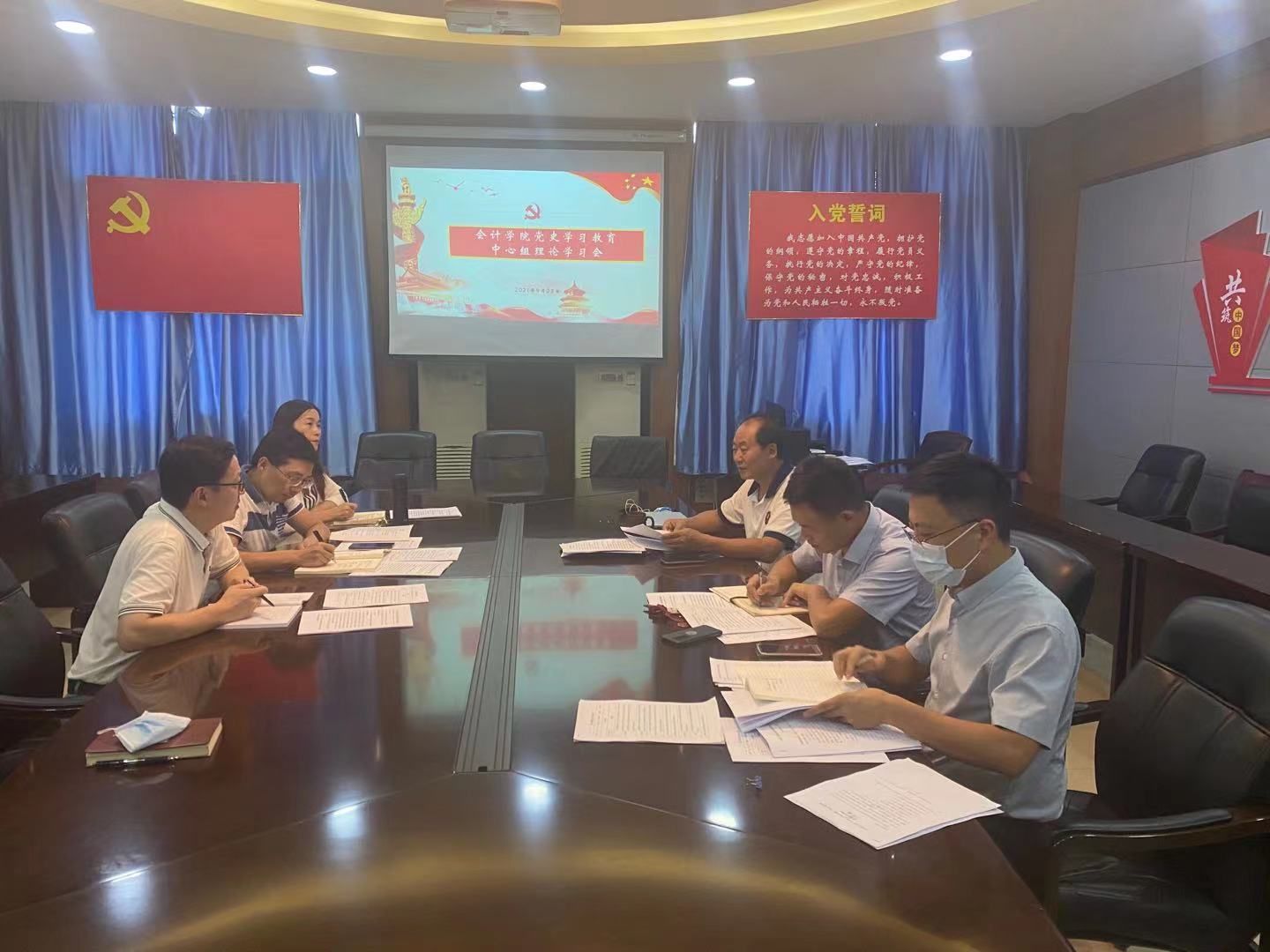 (通讯员 畅雅莉) 9月23日,yh86银河国际党委理论学习中心组在文泉楼南306会议室集中开展理论学习,学院全体党委委员参加学习。理论学习会由院党委书记殷修林主持。