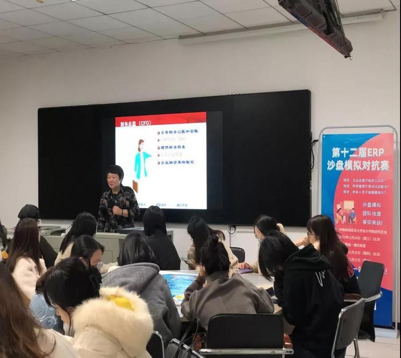 11月24日晚六点半,赛前培训活动在文泉楼南一楼实验室顺利开展。培训活动分为两个部分:规则讲解和实战模拟,张慧德副教授为同学们讲解ERP沙盘比赛的具体比赛规则,比赛中,每个团队5人,各代表着CEO(首席执行官)、CFO(首席财务)、营销总监、生产总监、采购总监。每个团队经营一个拥有一定资产的销售良好、资金充裕的虚拟公司,连续从事几个会计年度的经营活动。通过直观的企业经营沙盘,模拟企业实际运行状况,内容涉及企业整体战略、产品研发、设备投资改造、生产能力规划与排程、物料需求计划、资金需求规划、市场与销售、财务经济指标分析、团队沟通与建设等多个方面。随后,同学们开展了模拟演练,包括资金借贷,厂房设备的购买,广告投放以及产品生产等流程。演练过程中,同学们热情谈论,情绪高涨。经过三个小时的培训活动,同学们对ERP沙盘模拟对抗赛有了充分的了解。