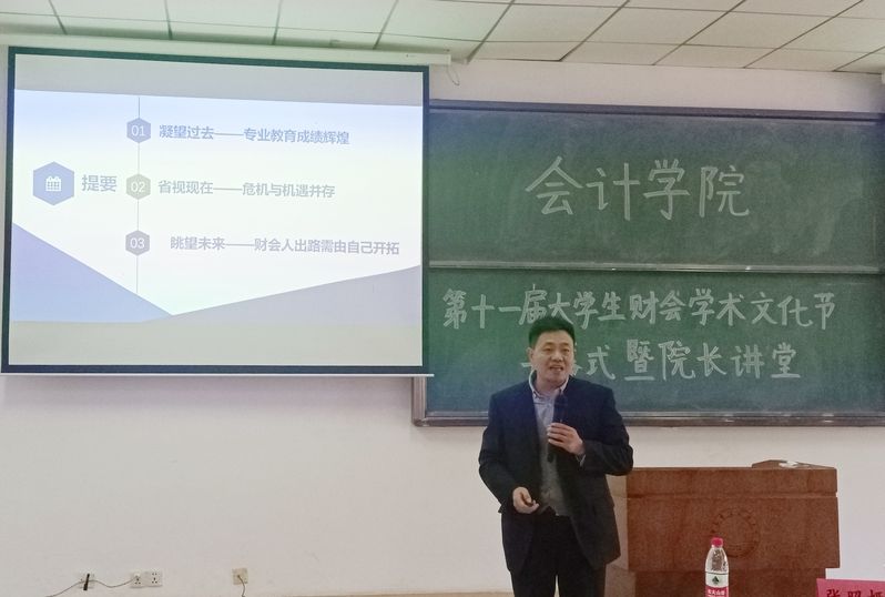 在“审视现在,危机与机遇并存”部分,张院长解释了专业消亡论并针对会计从业人员质量两极分化严重这一现象,向同学们提出“充分投身专业学习,争做高端会计人才”的要求。