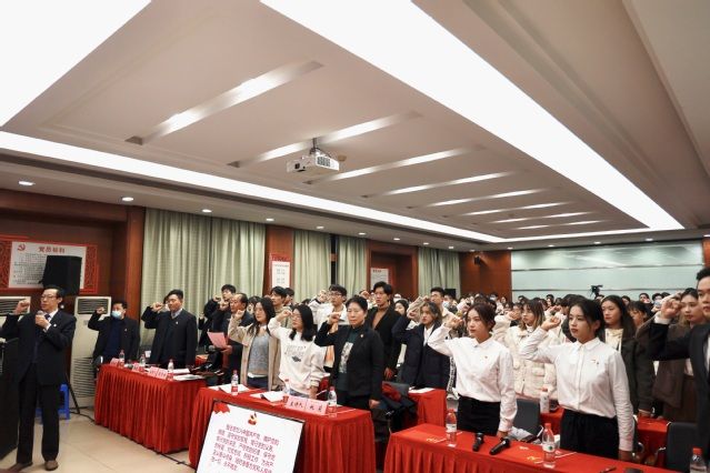 授课开始前,首批湖北省高校优秀“双带头人”教师党支部书记、银河汤湘希教授带领在场师生党员重温入党誓词。