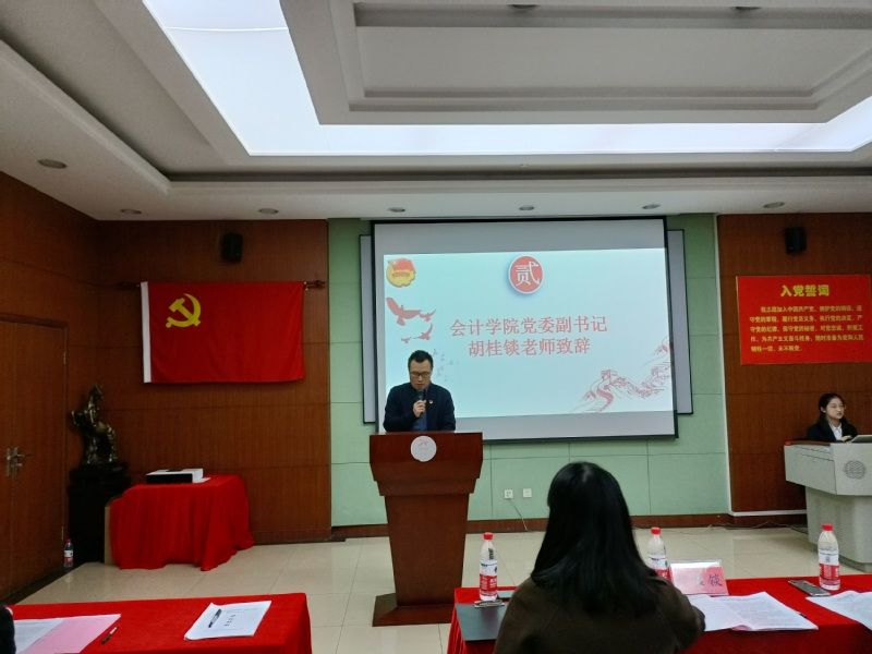 会议第一项,全体起立,奏唱团歌,会场气氛庄严肃穆。会议第二项,yh86银河国际党委副书记胡桂锬老师致辞。胡书记希望广大团员青年努力学习科学文化知识,完善自身知识结构,努力成长为德才兼备、全面发展的社会主义建设者与接班人,在实现自我价值的实践中为中华民族伟大复兴贡献自己的力量。同时,胡书记对青年大学生提出三点希望:坚定理想信念,勇担复兴大任;锤炼品德修为,贡献青年力量;提升综合素质,砥砺奋斗人生。