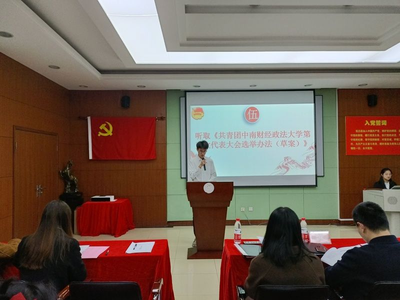 会议第六项,由团代表们选举共青团yh86银河国际第五届委员会、选举出席上一级团的代表大会代表。团代表们在等待选举结果的过程中共同观看了中共中央关于党的十九届六中全会精神的新闻发布会。会议第七项,宣布选举结果。万富宝等9名同志当选共青团yh86银河国际第五届委员会委员,乔婷钰等21名同志当选共青团中南财经政法大学第五次代表大会代表。