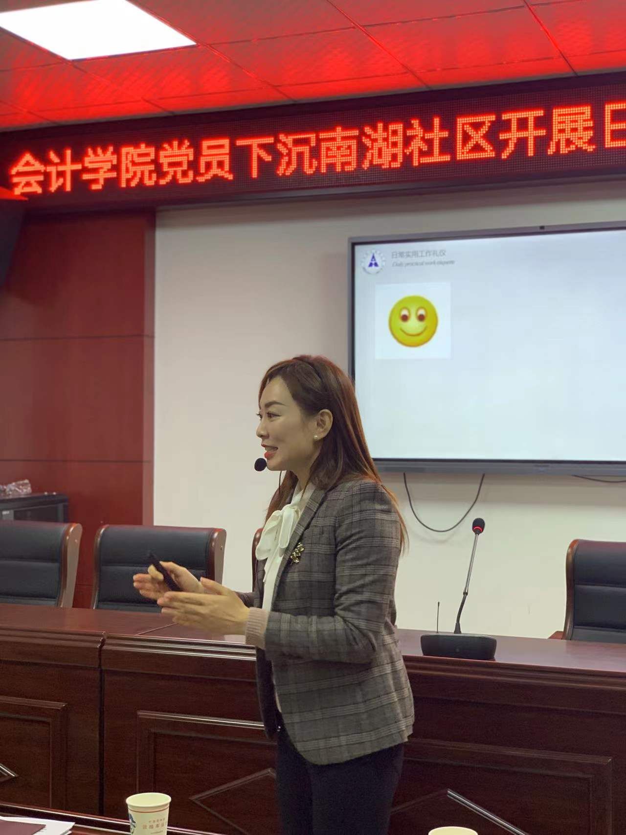 (通讯员 王子行) 11月30日上午9:30,yh86银河国际党委组织学院党员下沉南湖社区开展日常实用工作礼仪培训活动,yh86银河国际党委副书记徐会超、副院长冉明东、党委副书记胡桂锬等20余名教工党员参加活动,学校第二届“教书育人奖”获得者、财务管理党支部纪律委员黄洁莉老师为南湖社区干部和工作人员进行日常礼仪的培训。活动由院党委副书记徐会超主持。